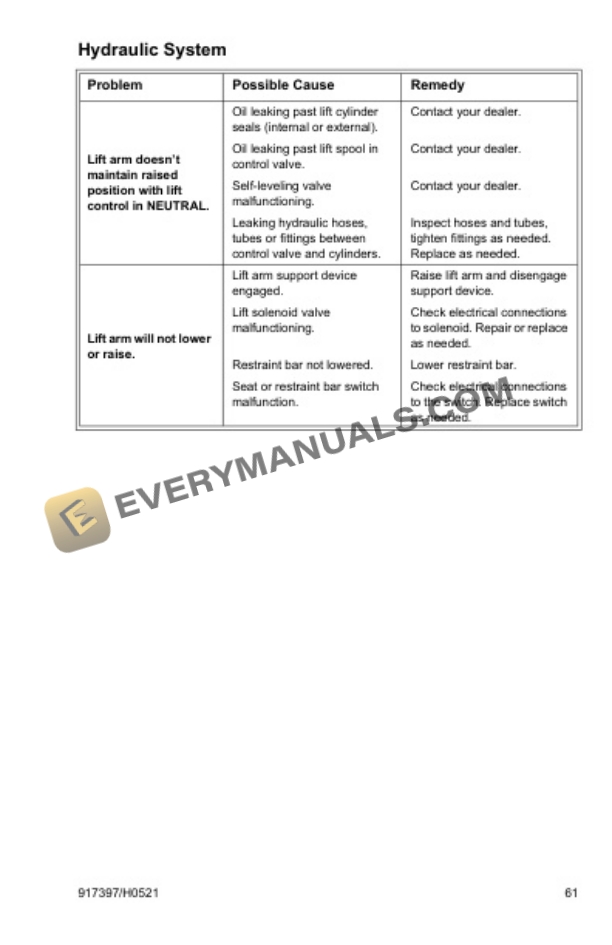 - 3.2.8. Lift Arm Support Device