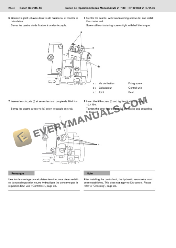 - 6.4. Contrôle de la position neutre hydraulique