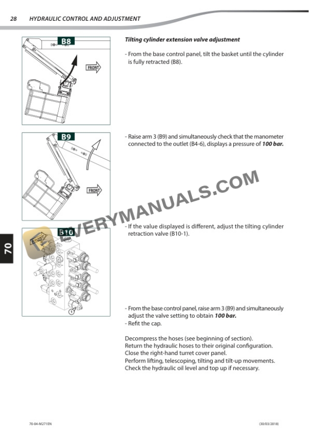 - 9.4. HYDRAULIC CONTROL AND ADJUSTMENT