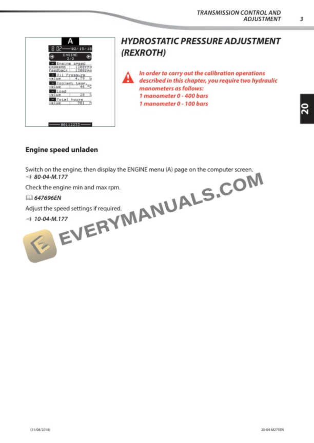 - 7.3.1. Engine speed unladen