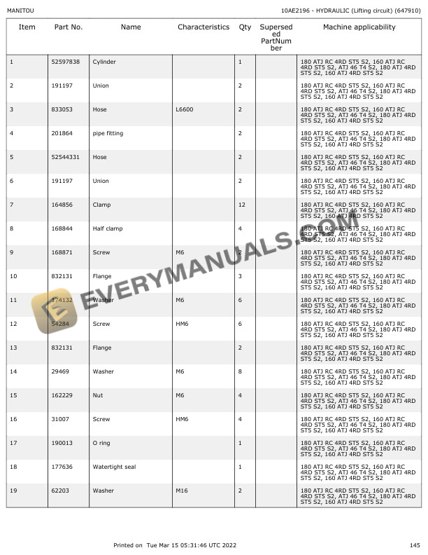 Manitou ATJ 46 T4 S2 Parts Manual 647910