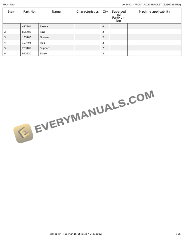 • Type Of Manual: Parts Manual