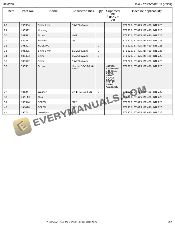 - 7.1.2. A9 TELESCOPIC JIB (47954)
