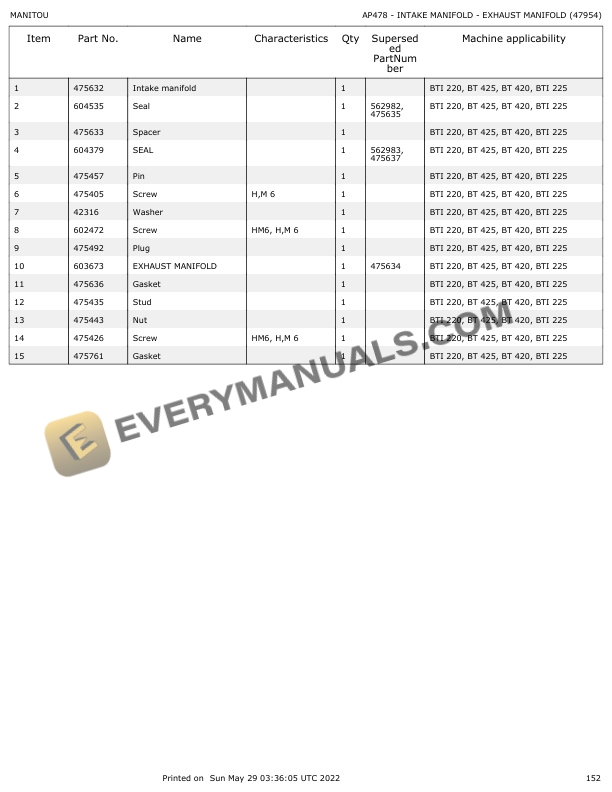 - 8.5.2. AP478 INTAKE MANIFOLD EXHAUST MANIFOLD (47954)
