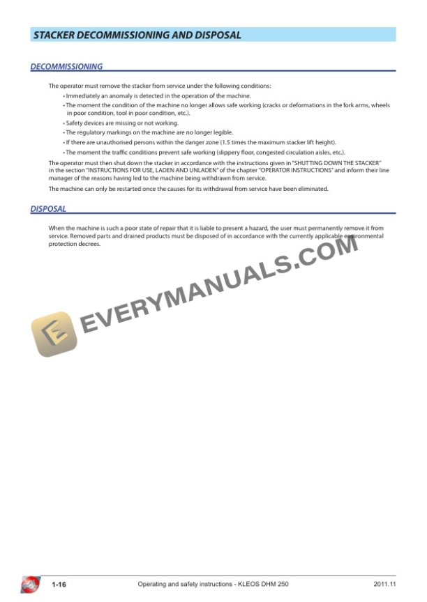 - 2.3. UNLADEN AND LADEN STACKER OPERATING INSTRUCTIONS
