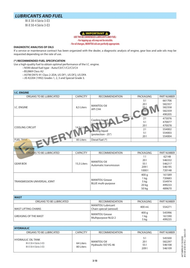 - 8. LUBRICANTS AND FUEL MX 702 Série 3E3