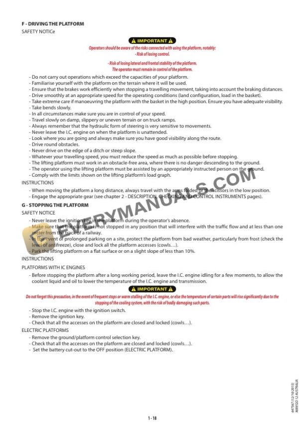- 1.3. PLATFORM MAINTENANCE INSTRUCTIONS