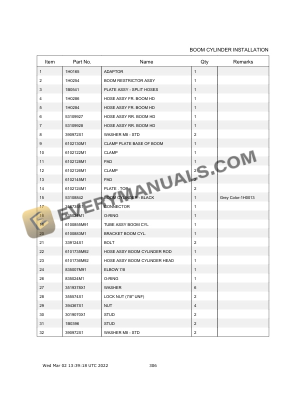 - 8.7.17. BOOM CYLINDER INSTALLATION