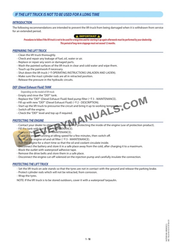 - 1.4. IF THE LIFT TRUCK IS NOT TO BE USED FOR A LONG TIME