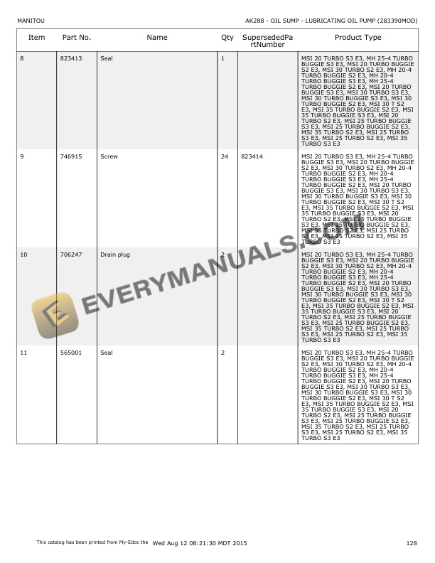 - 5.17.2. AK290 WATER PUMP (283390MOD)