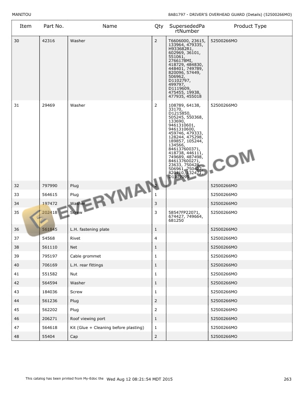 - 7.10. B1799 DRIVERS OVERHEAD GUARD (Details) (52500266MO)