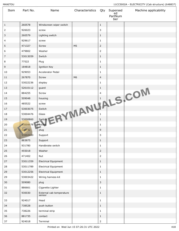 Manitou MHT 1490 129M ST4 S1, MHT-X 1490 129M ST3A S1 Parts Manual 648837