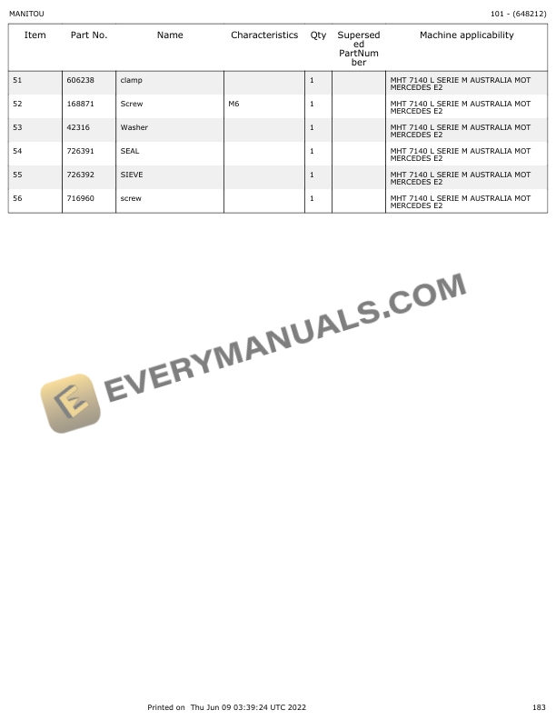 Manitou MHT 7140L Parts Manual 648212
