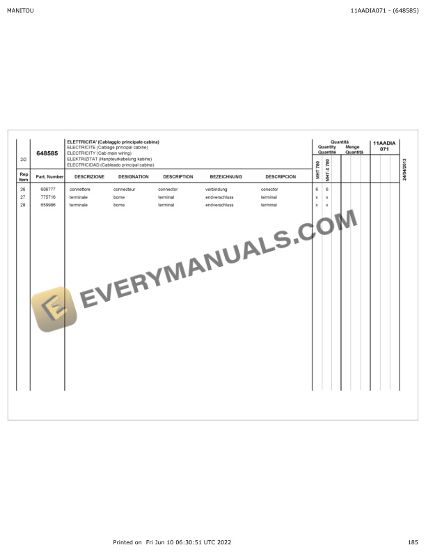 Manitou MHT 780, MHT-X 780 Parts Catalog 648585