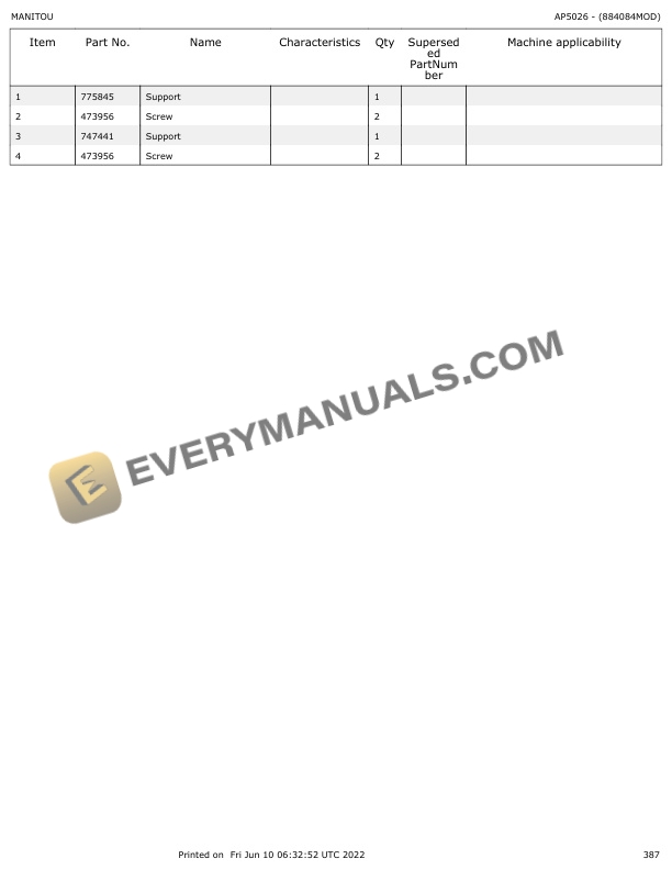 • Type Of Manual: Parts Catalog