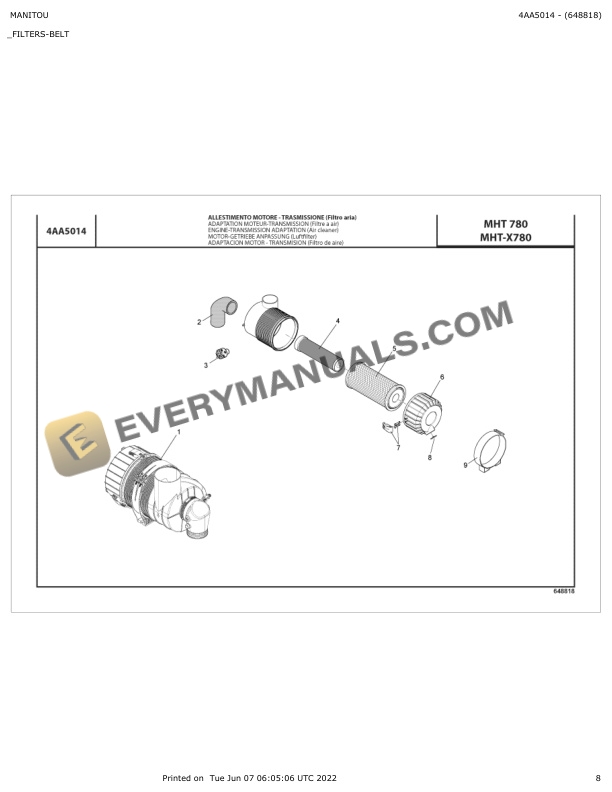 Manitou MHT 780, MHT-X 780 Parts Manual 648818