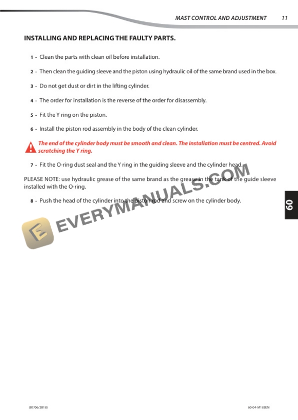 - 8.9. LIFTING CYLINDER REMOVAL AND INSTALLATION