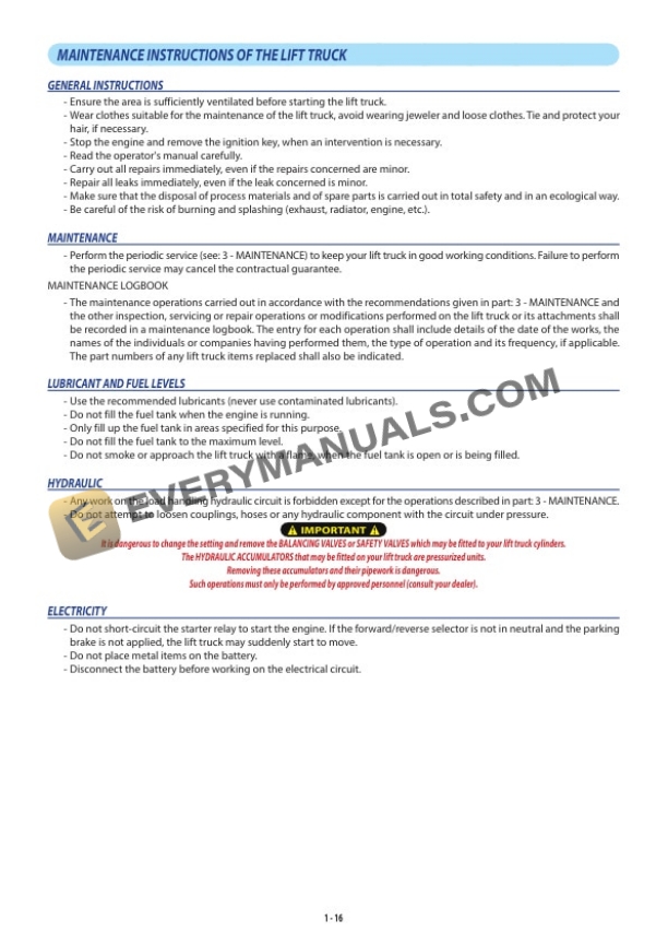 - 1.3. MAINTENANCE INSTRUCTIONS OF THE LIFT TRUCK