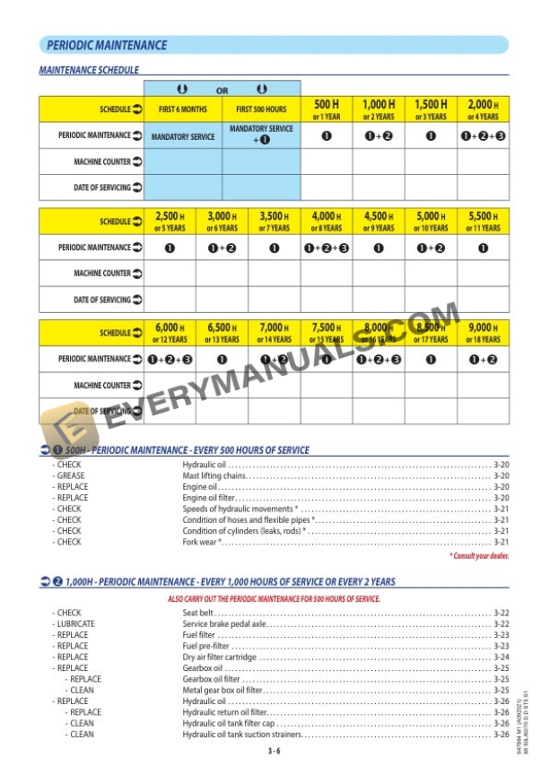 - 3.11. Ü 500H PERIODIC MAINTENANCE EVERY 500 HOURS OF SERVICE