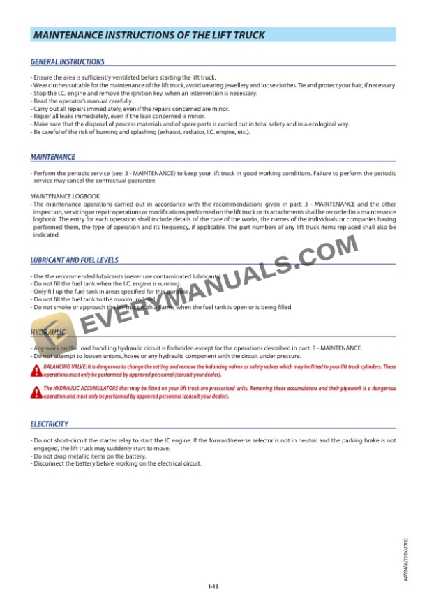 - 2.3. MAINTENANCE INSTRUCTIONS OF THE LIFT TRUCK