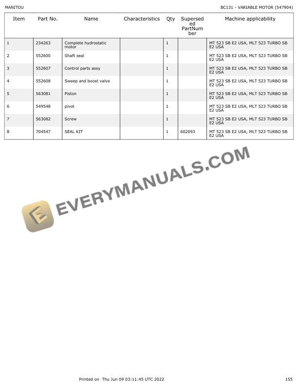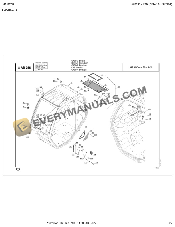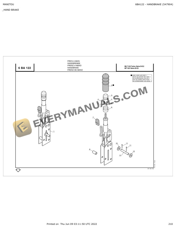 Manitou MLT 523 Turbo Series B-E2, MT 523 Series B-E2 Parts Manual 547904