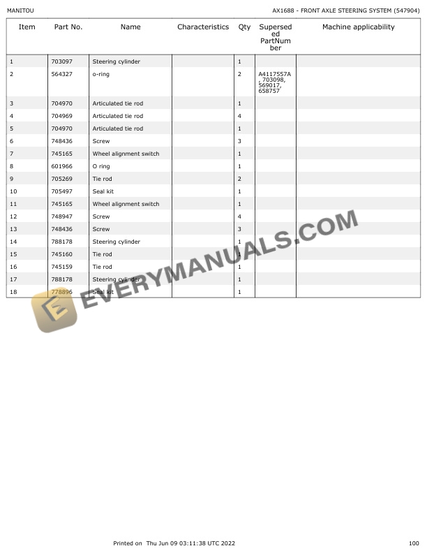 • Type Of Manual: Parts Manual