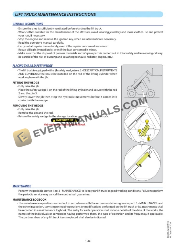 - 1.3. LIFT TRUCK MAINTENANCE INSTRUCTIONS