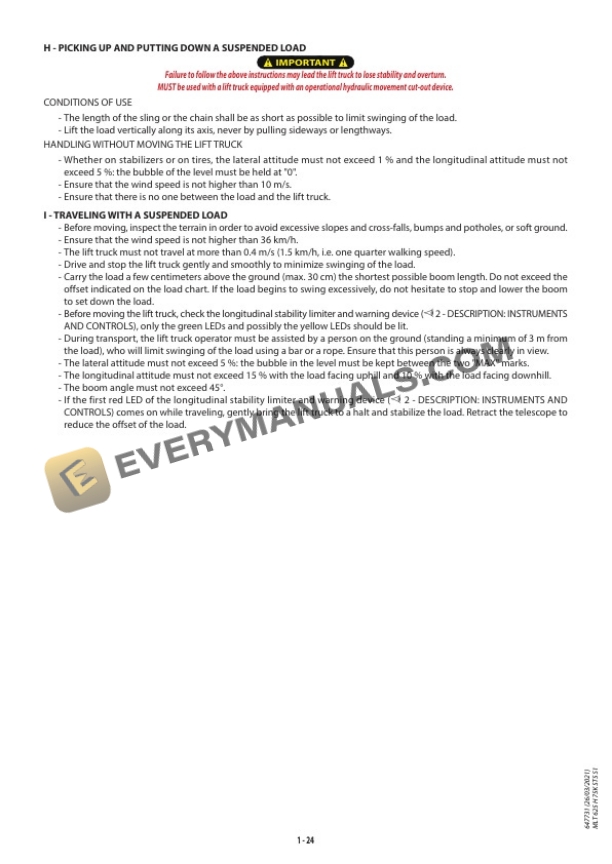 - 1.2.4.9. I TRAVELING WITH A SUSPENDED LOAD