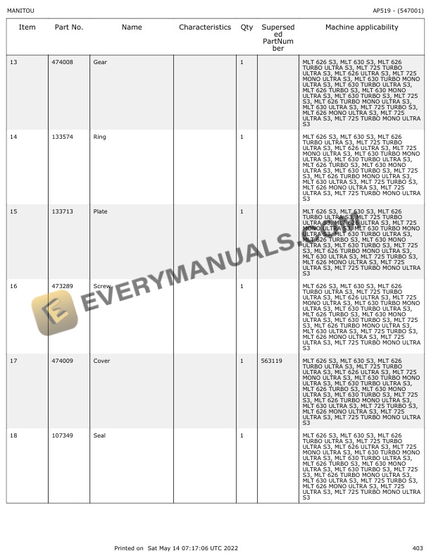 - 11.6. AX331 FRONT AXLE REDUCTION GEAR (547001)