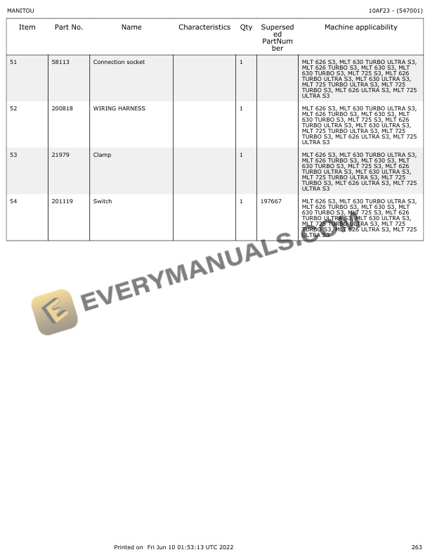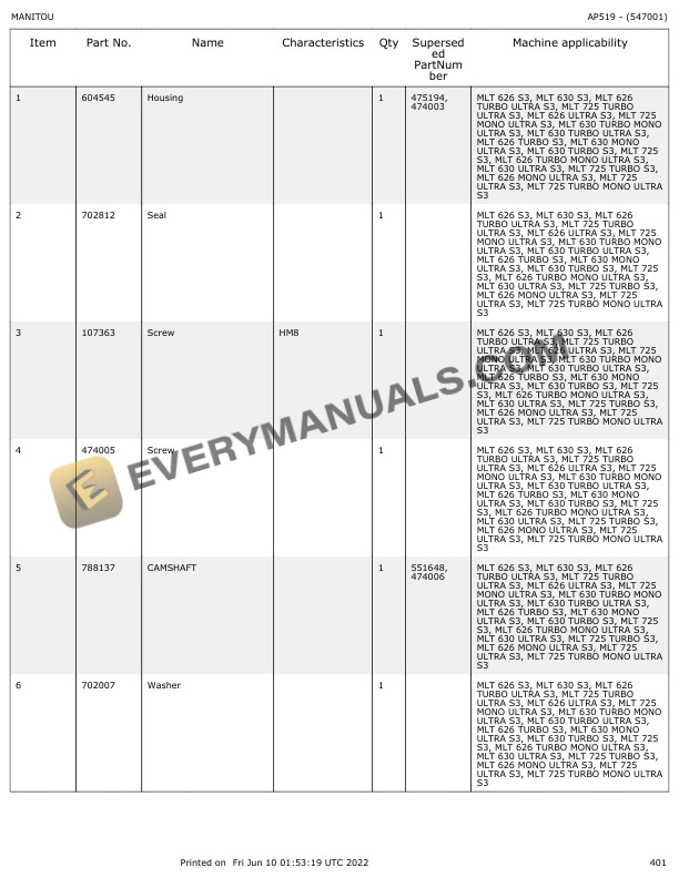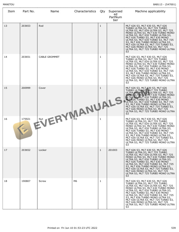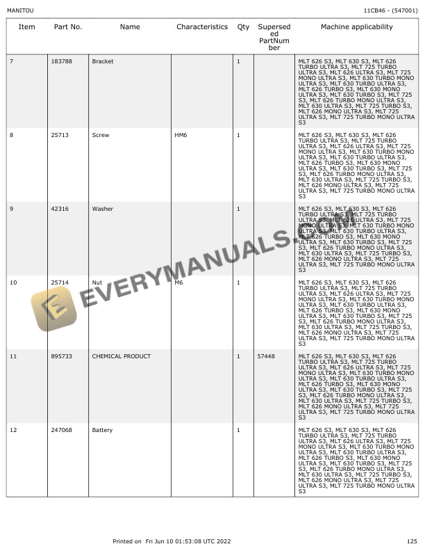 Manitou MLT 626 to MLT 725 Turbo Mono Ultra Parts Manual 547001