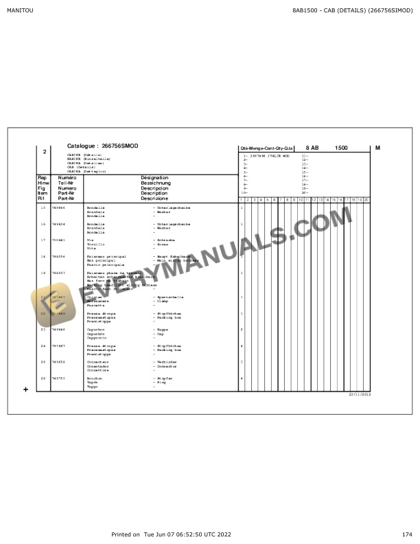 Manitou MLT 627 T Evolution 20 SC-E3, MLT 627 T Evolution 24 SC-E3, MLT 627 T Evolution Compact 20 SC-E3 Parts Manual 647001