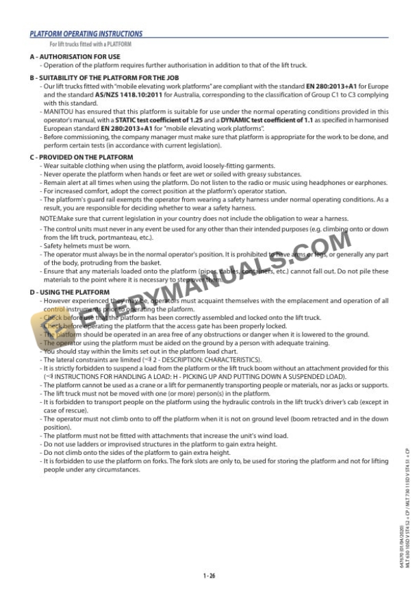 - 1.2.6. PLATFORM OPERATING INSTRUCTIONS