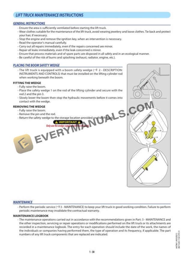 - 1.3. LIFT TRUCK MAINTENANCE INSTRUCTIONS