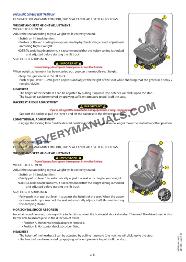 - 1.1.3.2. B ADAPTATION OF THE LIFT TRUCK TO STANDARD ENVIRONMENTAL CONDITIONS