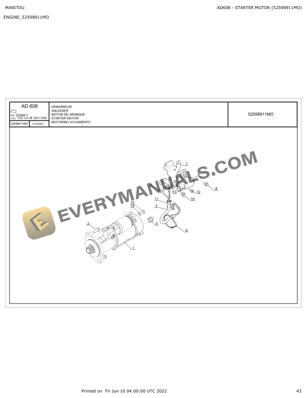 • Type Of Manual: Parts Manual
