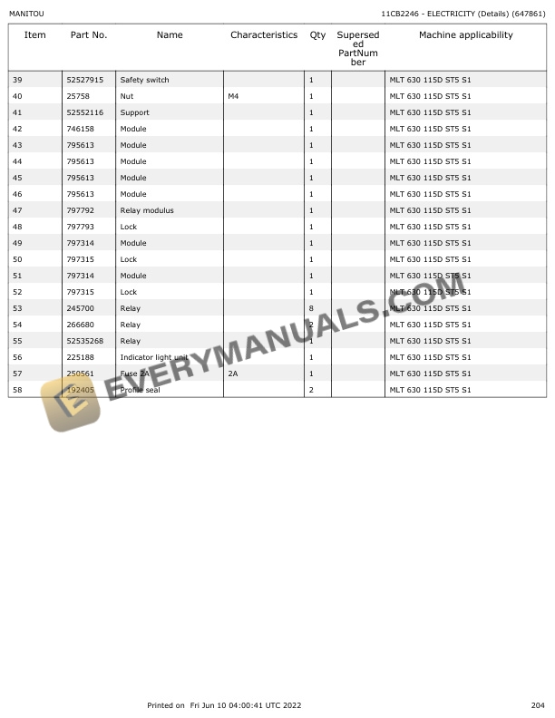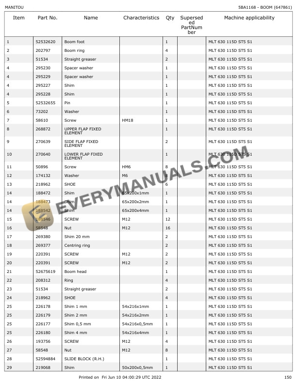 Manitou MLT 630 115D ST5 S1 Parts Manual 647861