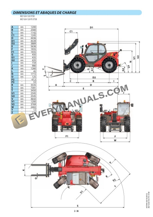 - 2.15. DIMENSIONS ET ABAQUES DE CHARGE MLT 634 120 ST3B MLT 634 120 PS ST3B