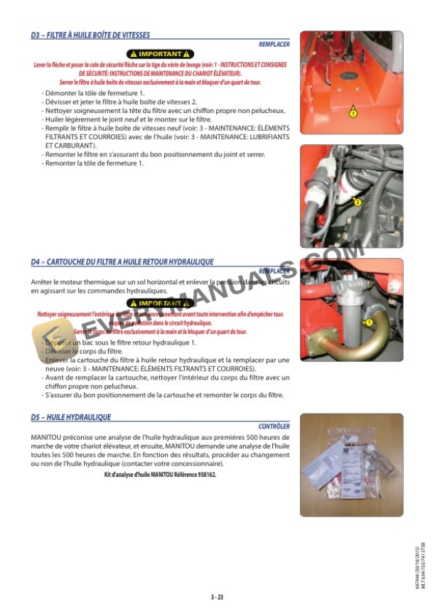 - 3.1. PIÈCES RECHANGE ET ÉQUIPEMENTS DORIGINE MANITOU
