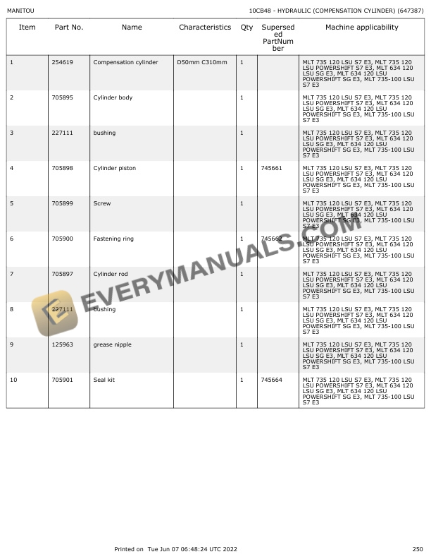 Manitou MLT 735-120LSU S.7-E3, MLT 735-120LSU PS S.7-E3, MLT 735-100LSU S.7-E3 Parts Manual 647387
