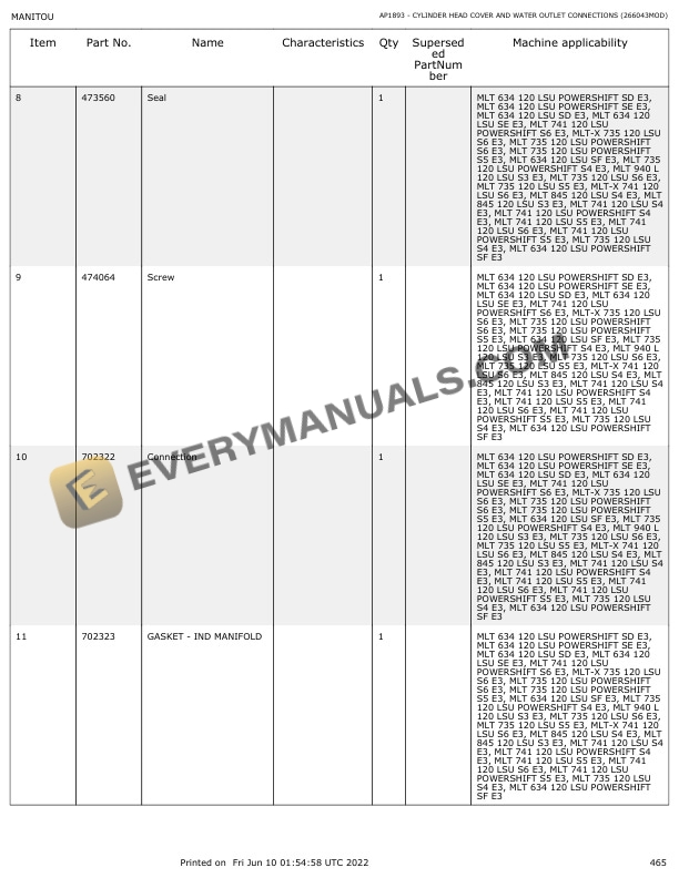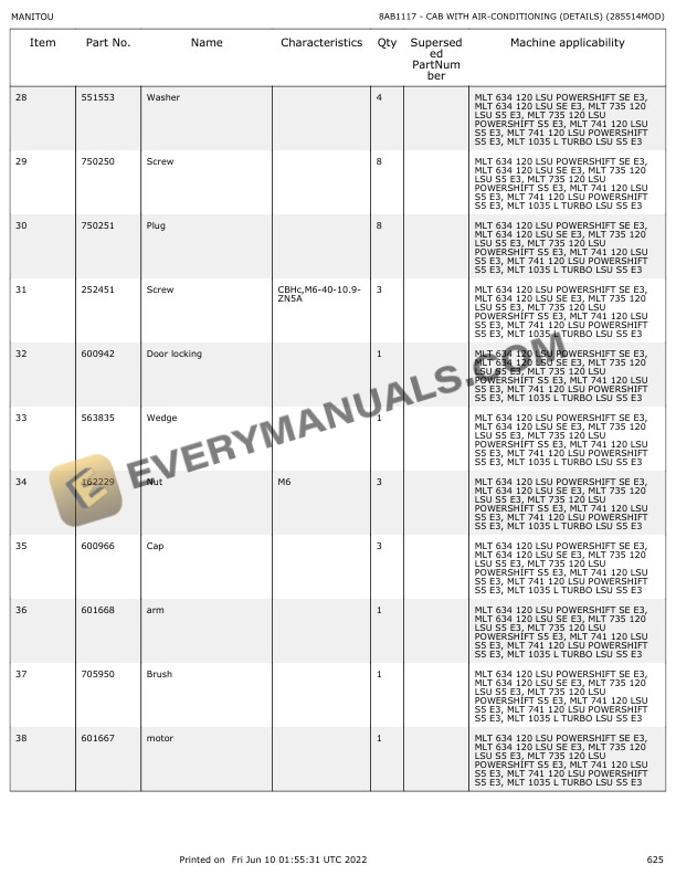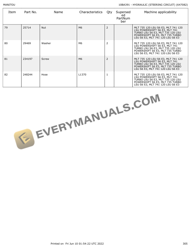 Manitou MLT 735-LSU Turbo S6-E3 to MLT 1035 L-LSU Turbo S6-E3 Parts Manual 647082