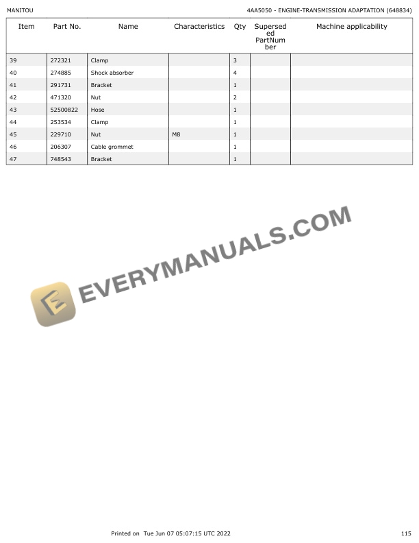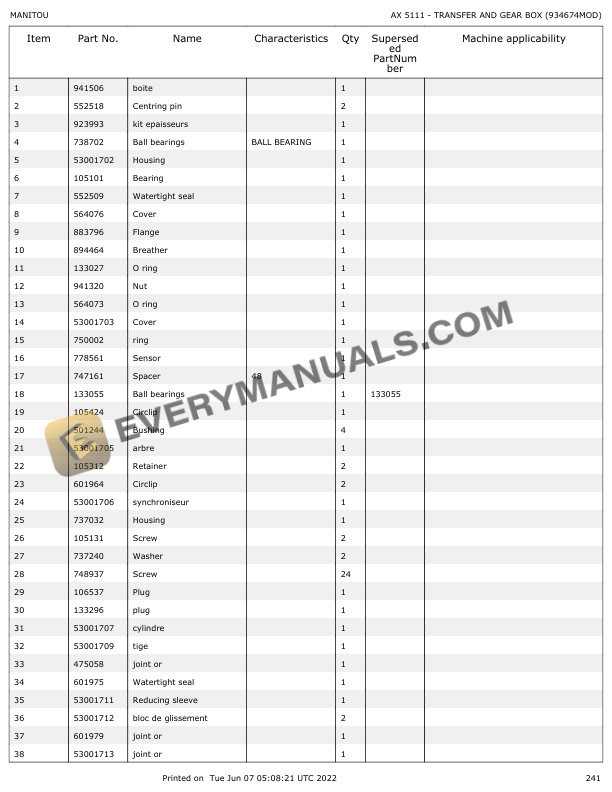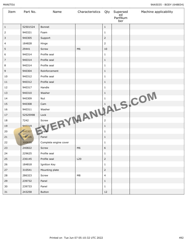 Manitou MLT 735H-100 ST3B, MLT 741H-100 ST3B, MLT 741H-120 ST3B, MLT 940H-120 ST3B, MLT 935H-100 ST3B Parts Manual 648834
