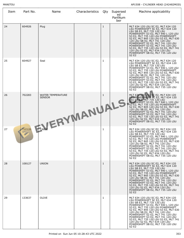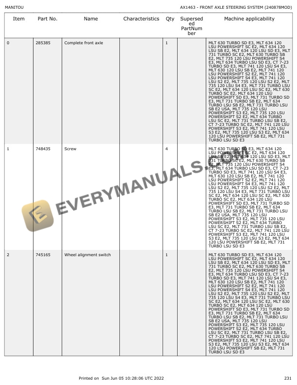 Manitou MLT 741-120 LSU S2-E2, MLT 741-120 LSU PS S2-E2, MLT 742 Turbo S2-E2 Parts Manual 547852