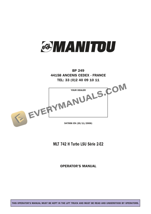 Manitou 100 DLX, 120 DLX, 145 DLX Access Platform Operator Manual 547327EN