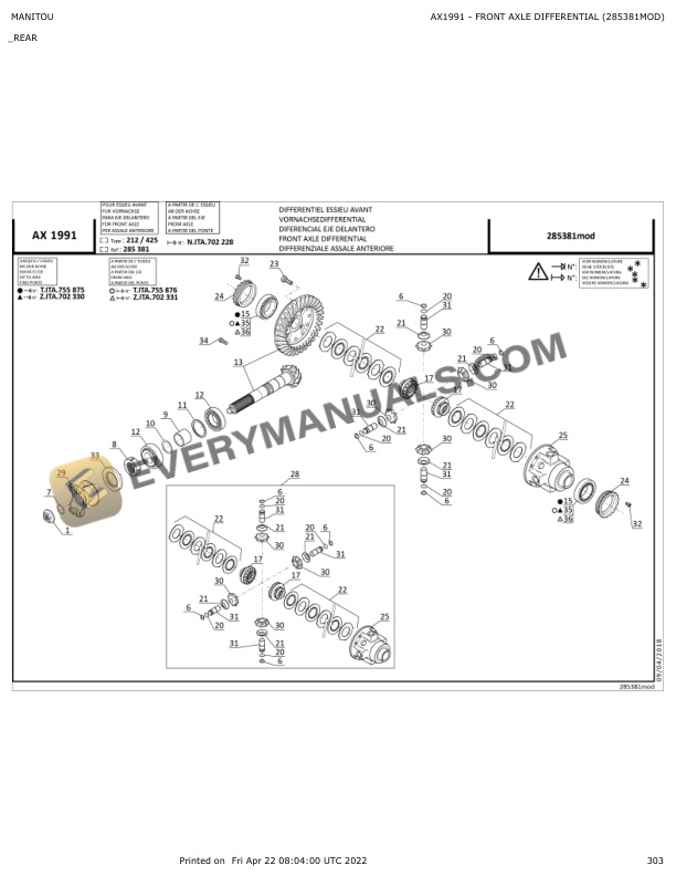 - 6.1. AX1472 OIL BATH DISC BRAKE FRONT AXLE (240875MOD)