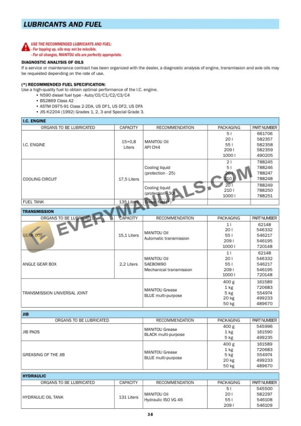 - 2.3.4. LUBRICANT AND FUEL LEVELS