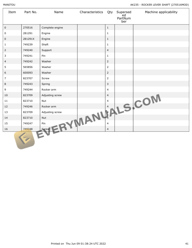 - 4.2.5. AK235 ROCKER LEVER SHAFT (270516MOD)