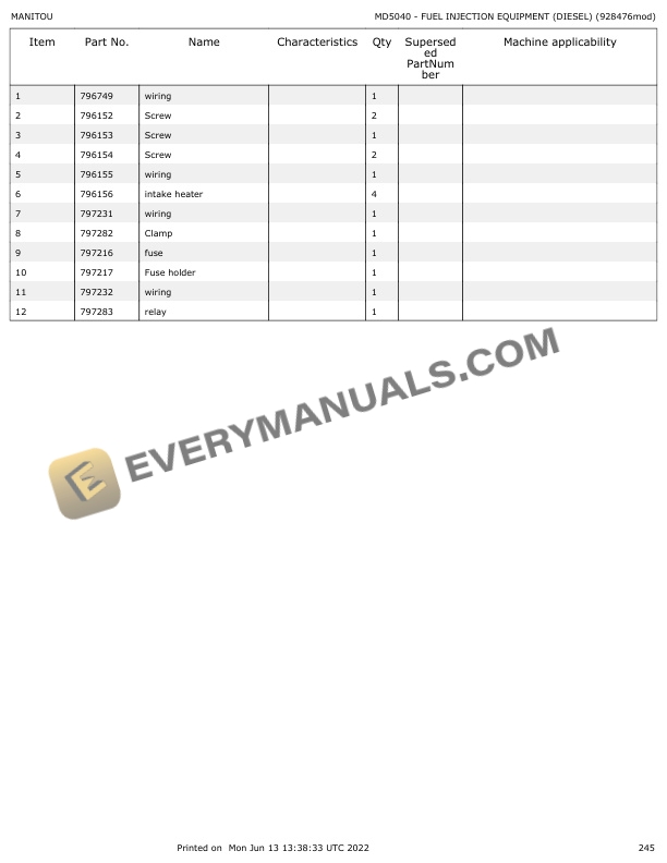 • Type Of Manual: Parts Manual