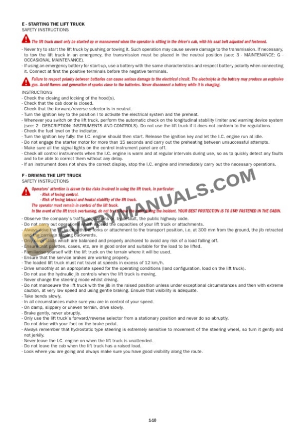 - 2.4.2. PREPARING THE LIFT TRUCK