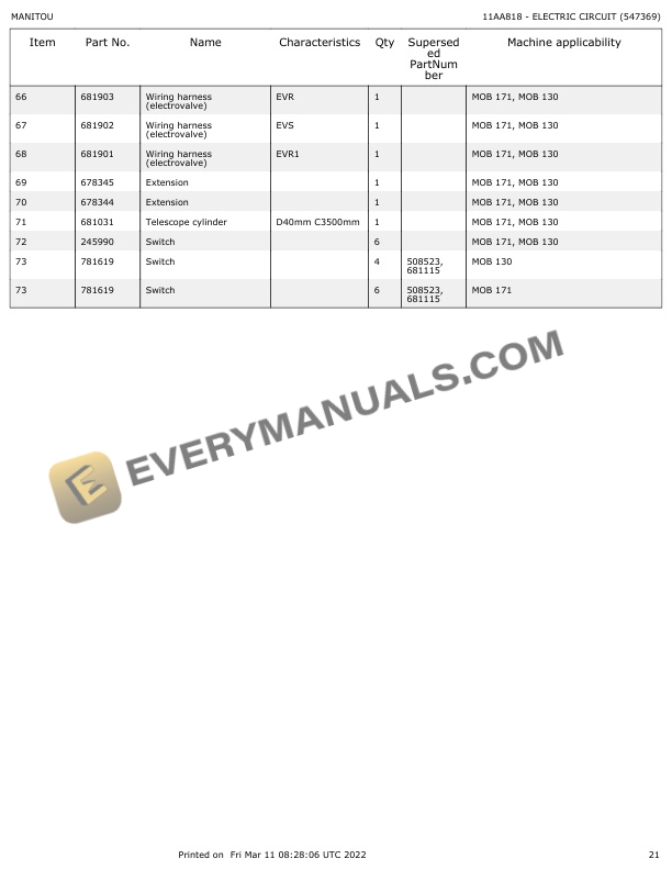 - 4.7.5.1. E599 HYDRAULIC (TELESCOPE CIRCUIT) (547369)
