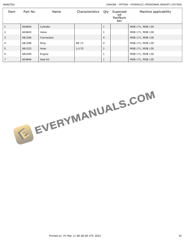 - 4.3.1. A386 OPTION HYDRAULIC (PERSONNAL BASKET) (547369)